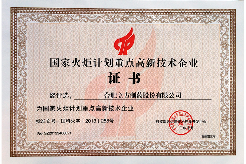 安博(中国) 国家火炬计划重点高新技术企业证...